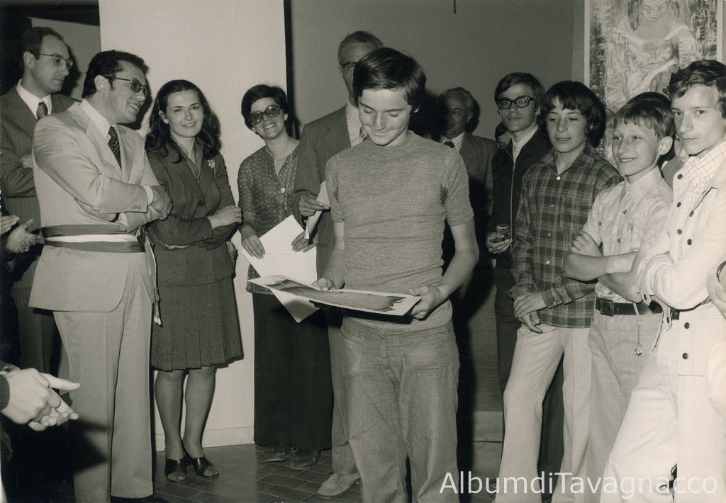 30° anniversario della lotta di liberazione. Premiazione degli alunni vincitori del concorso di disegno dedicato alla Resistenza, presso la Scuola media “Egidio Feruglio”.
