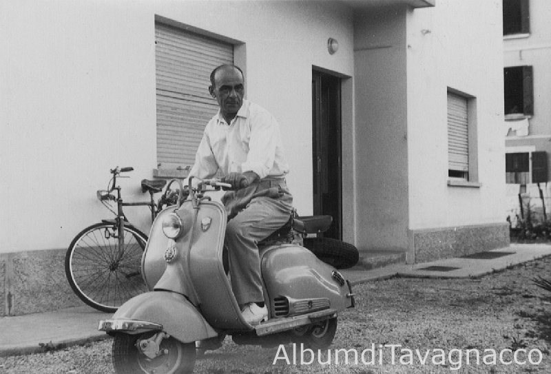 Uomo: Aleardo Bulfone. - Motocicletta: vespa