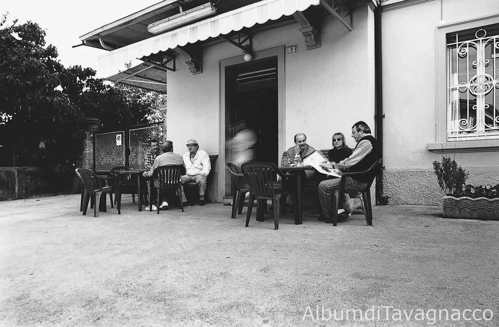 Avventori all'esterno della locanda “Al Tram”.