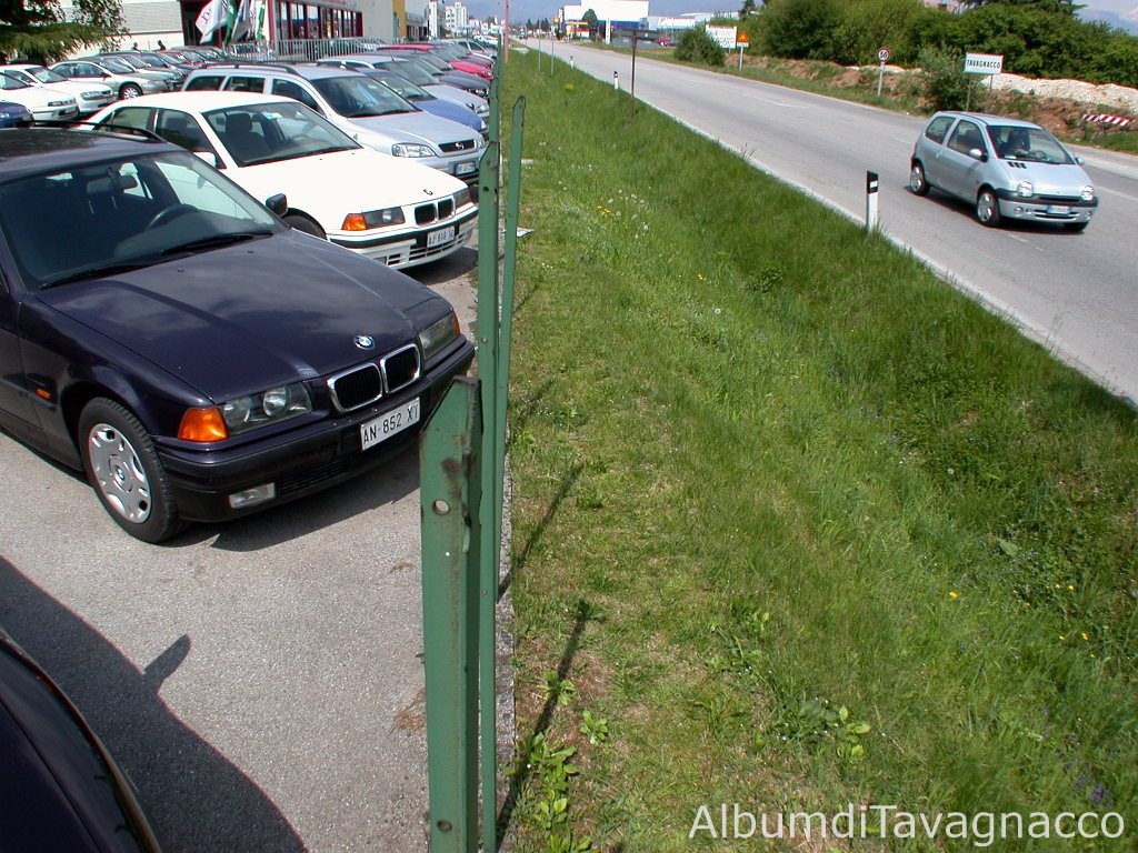 Autoconcessionaria: Lancia. - Via Nazionale. - Recinzione. - Automobili. - Automobili: BMW 318i. - Paracarro