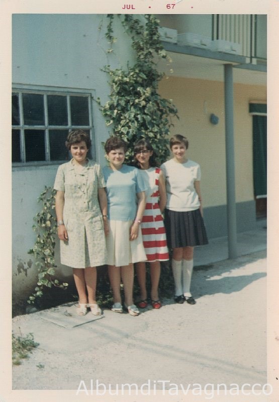 Gruppo di bambine in posa nel cortile. Da sinistra: Gloria Comuzzo, Gianna Righini, Silvana Murale e Sonia Chiaradia.