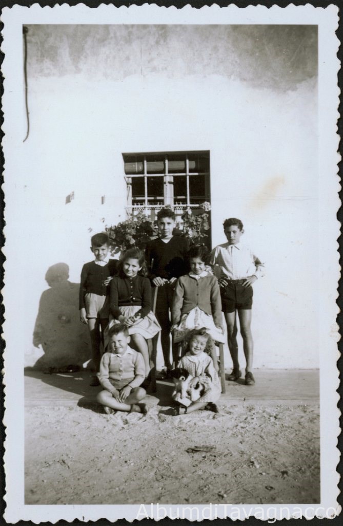 Gruppo di bambini in posa nel cortile di casa Foschiatti.