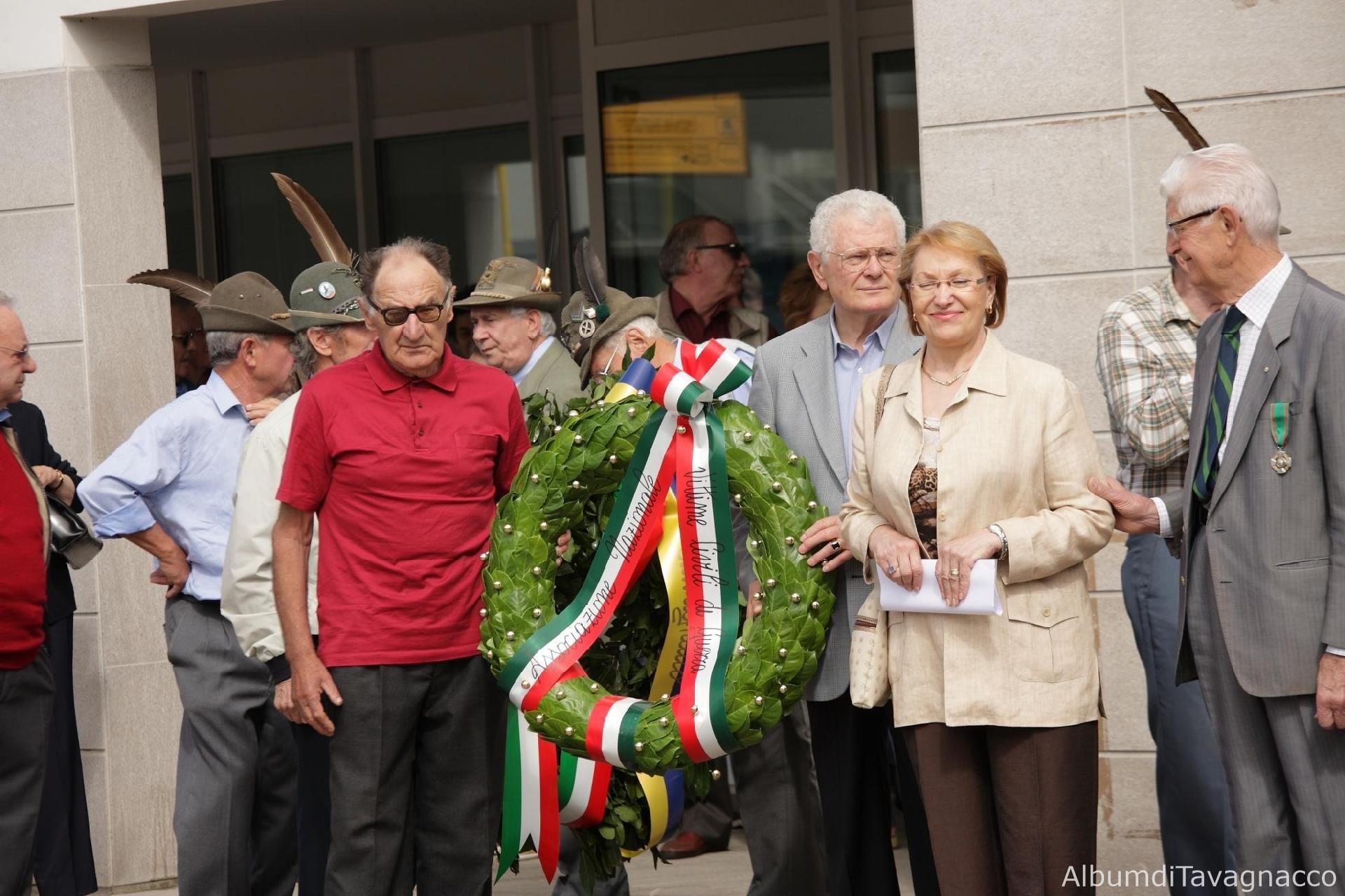 La corona d'alloro e il Presidente dell'Associazione Vittime civili di guerra Geretto in occasione delle celebrazioni del 2 giugno 2010.