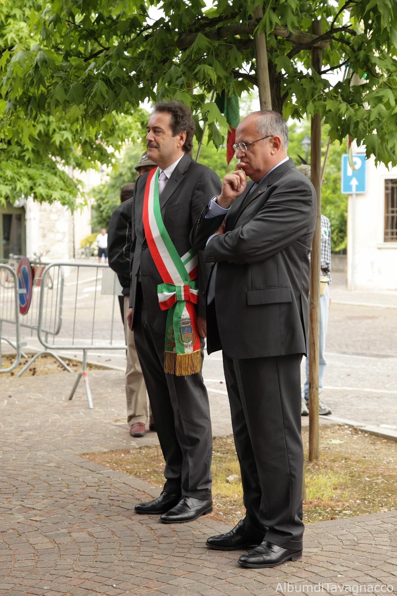 Il Sindaco Pezzetta e il Senatore Saro durante il momento dell'omaggio al Monumento ai Caduti in Piazza Libertà in occasione delle celebrazioni del 2 giugno 2010.