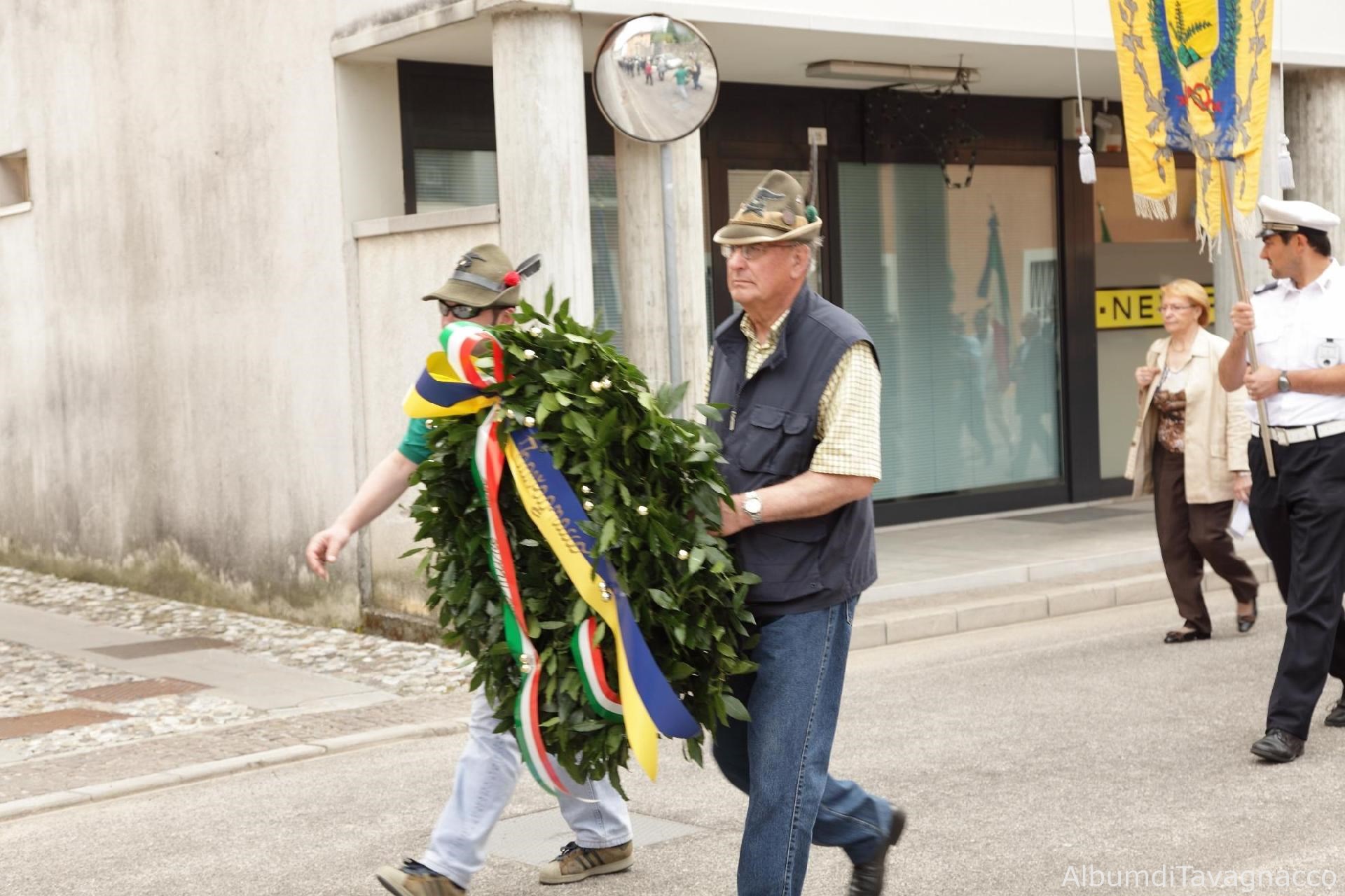 Rappresentanze degli Alpini con la corona d'alloro in corteo lungo Via dei Martiri verso la lapide in memoria delle Vittime Civili di guerra in occasione delle celebrazioni del 2 giugno 2010.