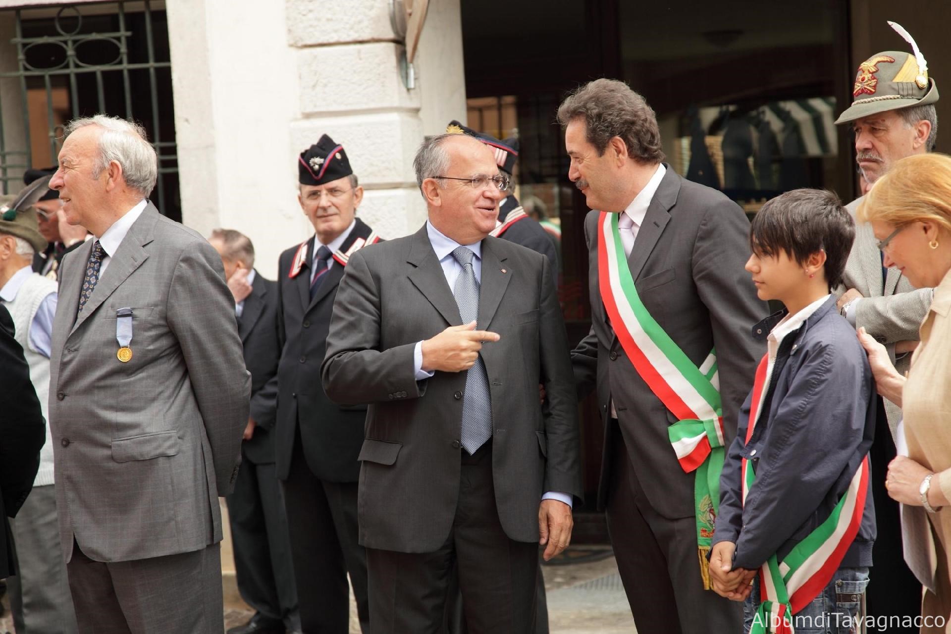 Il Senatore Saro col Sindaco Pezzetta a fianco del Sindaco del Consiglio Comunale dei Ragazzi Miozzo e del Presidente dell'Associazione Vittime Civili di guerra Geretto in occasione delle celebrazioni del 2 giugno 2010.