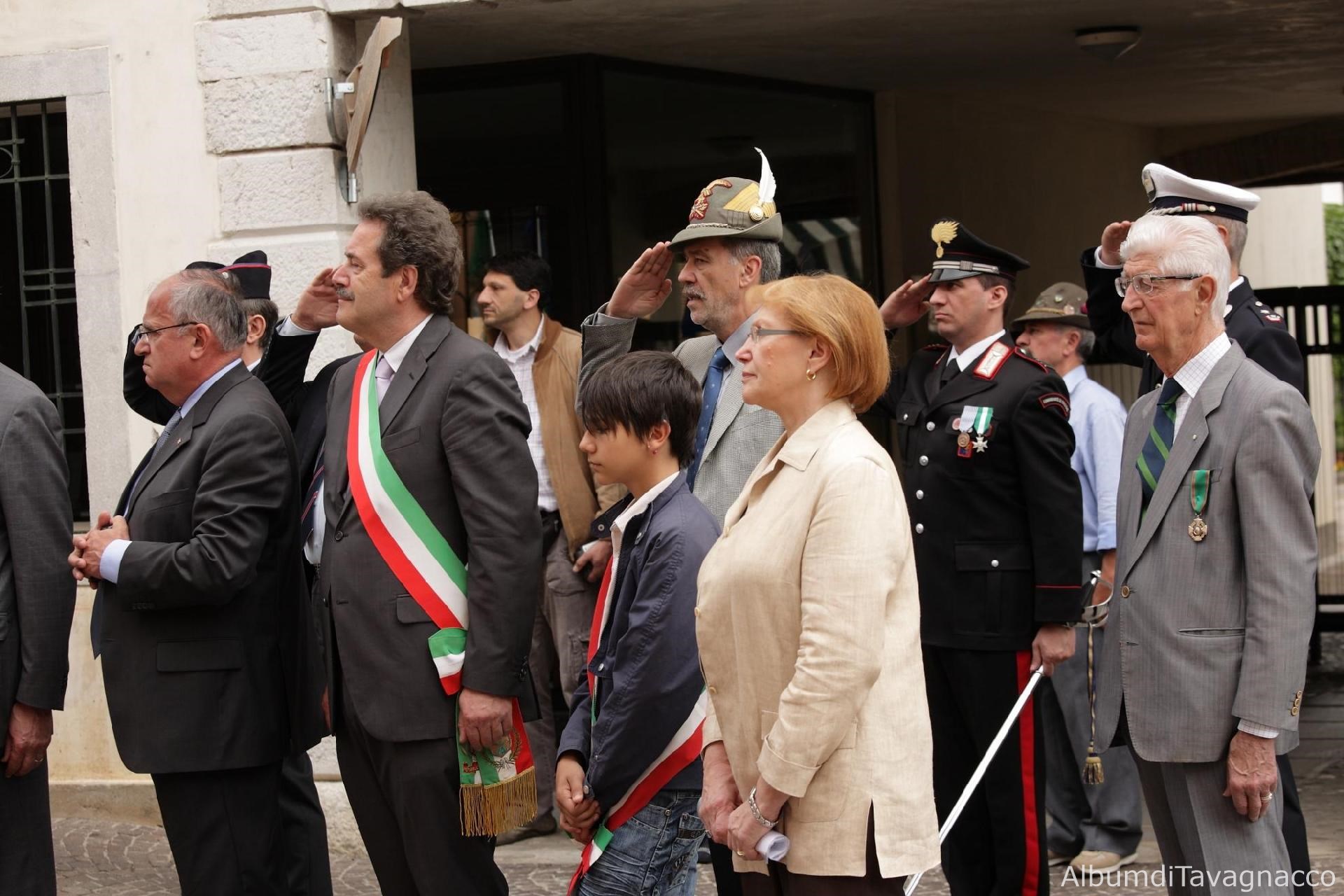 Il Senatore Saro, il Sindaco Pezzetta, il Sindaco del Consiglio Comunale dei Ragazzi Miozzo, il Presidente delle Vittime Civili di guerra Geretto e il Comandante dei Carabinieri di Feletto Umberto Alessandro Campagnolo rendono onore ai Caduti davanti alla lapide in memoria delle Vittime Civili di guerra in Via dei Martiri in occasione delle celebrazioni del 2 giugno 2010.