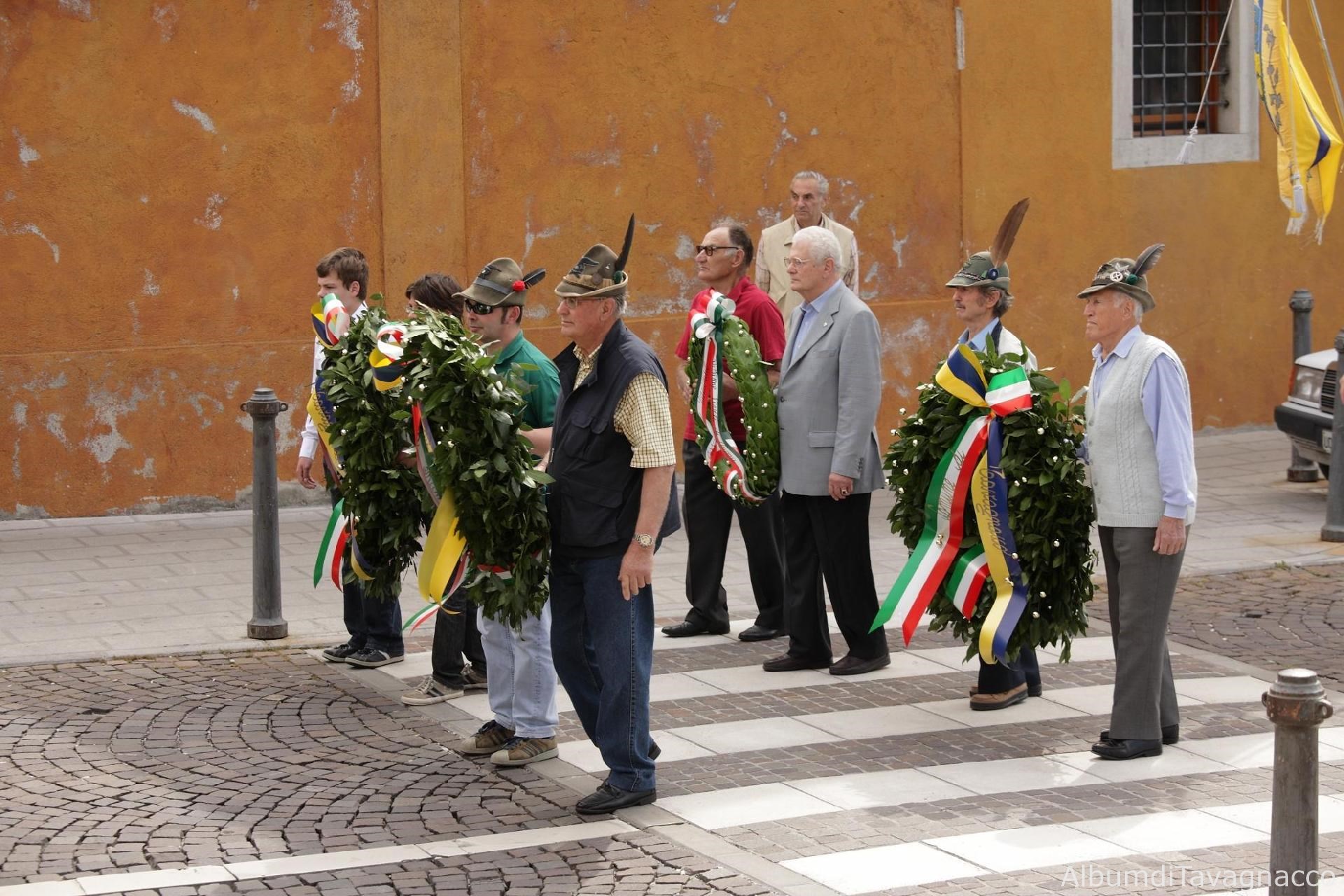 Rappresentanze degli Alpini con le corone d'alloro durante il corteo fino alla Chiesa Parrocchiale di Feletto Umberto in occasione delle celebrazioni del 2 giugno 2010.
