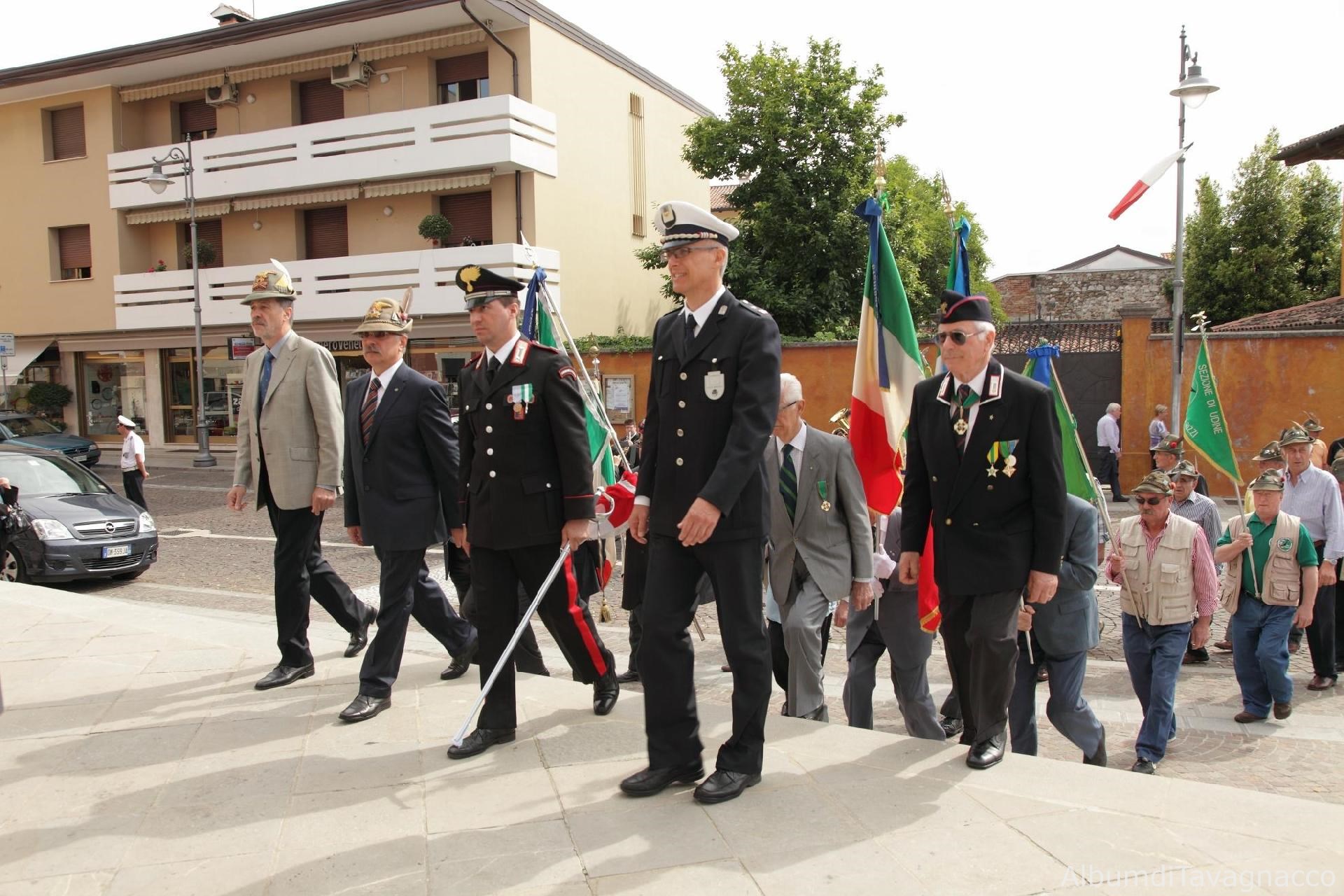Rappresentanze degli Alpini e il Comandante dei Carabinieri di Feletto Umberto Alessandro Campagnolo arrivano alla Chiesa Parrocchiale di Feletto al termine del corteo in occasione delle celebrazioni del 2 giugno 2010.
