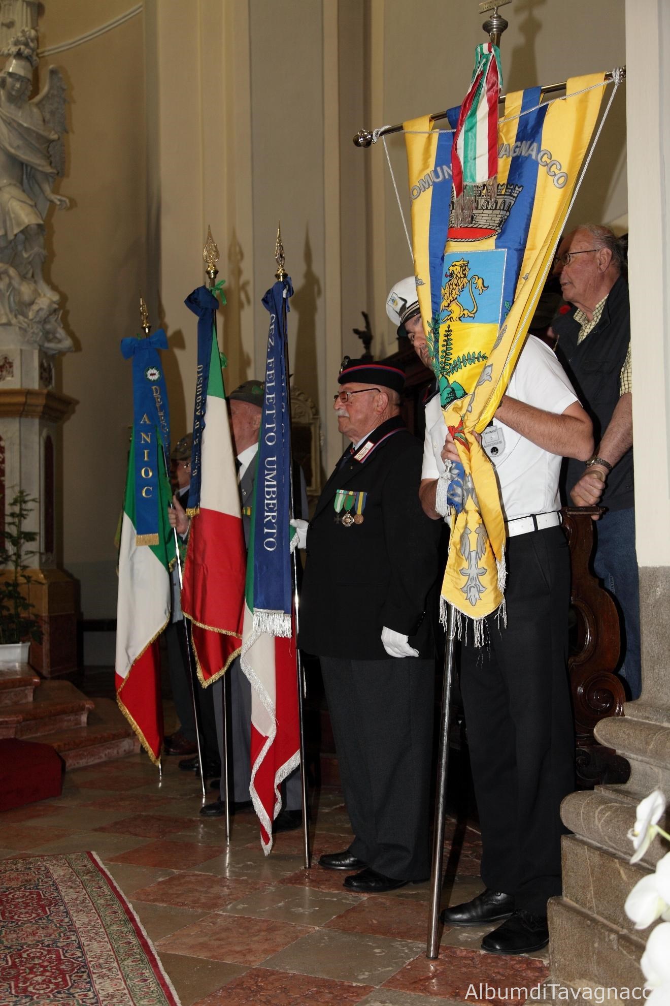 Rappresentanze degli Alpini, dell'Associazione Nazionale Carabinieri e della Polizia Municipale con le bandiere e il gonfalone del Comune di Tavagnacco durante la Messa in suffragio dei Caduti e delle Vittime Civili di guerra in occasione delle celebrazioni del 2 giugno 2010.