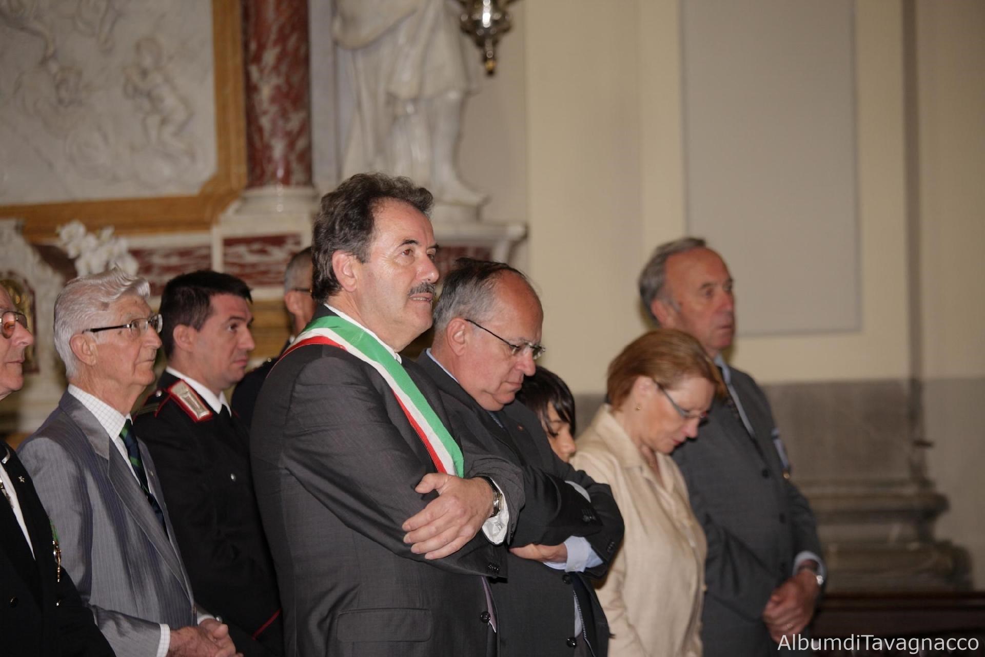 Il Comandante dei Carabinieri di Feletto Umberto Alessandro Campagnolo, il Sindaco Pezzetta, il Senatore Saro, il Sindaco del Consiglio Comunale dei Ragazzi Miozzo e il Presidente dell'Associazione Vittime Civili di guerra Geretto durante la Messa in suffragio dei Caduti e delle Vittime Civili di guerra in occasione delle celebrazioni del 2 giugno 2010.