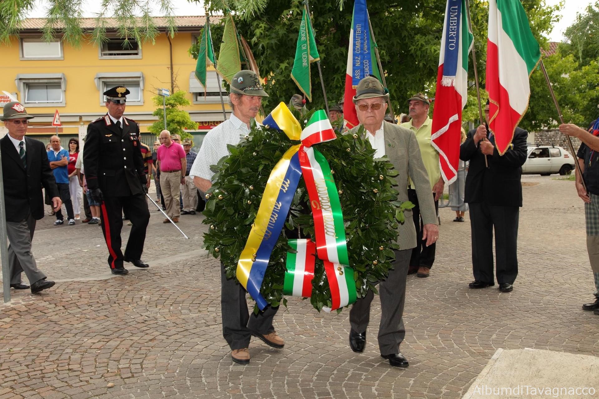 Due rappresentanti degli Alpini portano la corona d'alloro al Monumento ai Caduti in Piazza Libertà in occasione delle celebrazioni del 2 giugno 2011.