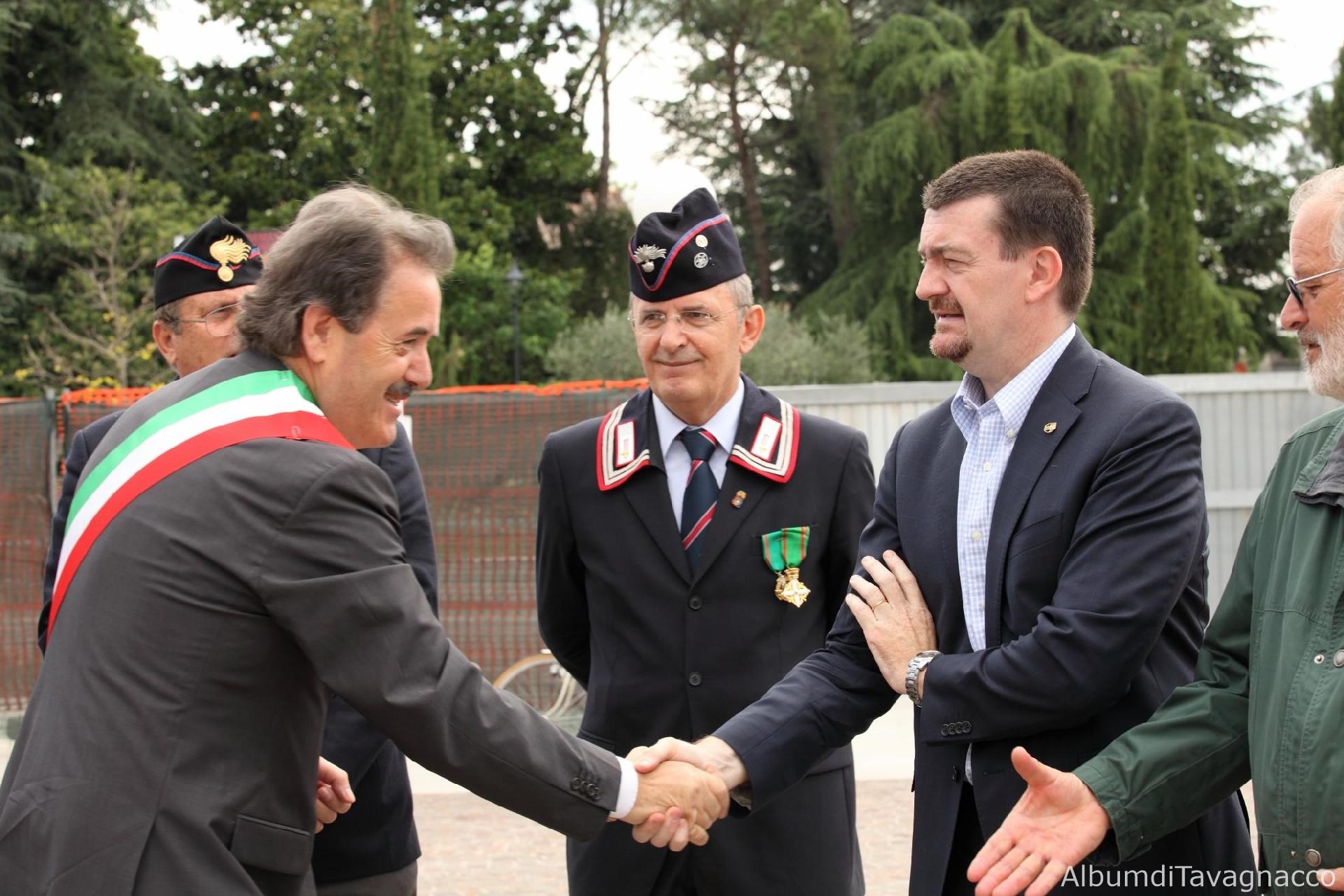 Il Sindaco Pezzetta stringe la mano al Consigliere regionale Asquini in occasione delle celebrazioni del 2 giugno 2011.
