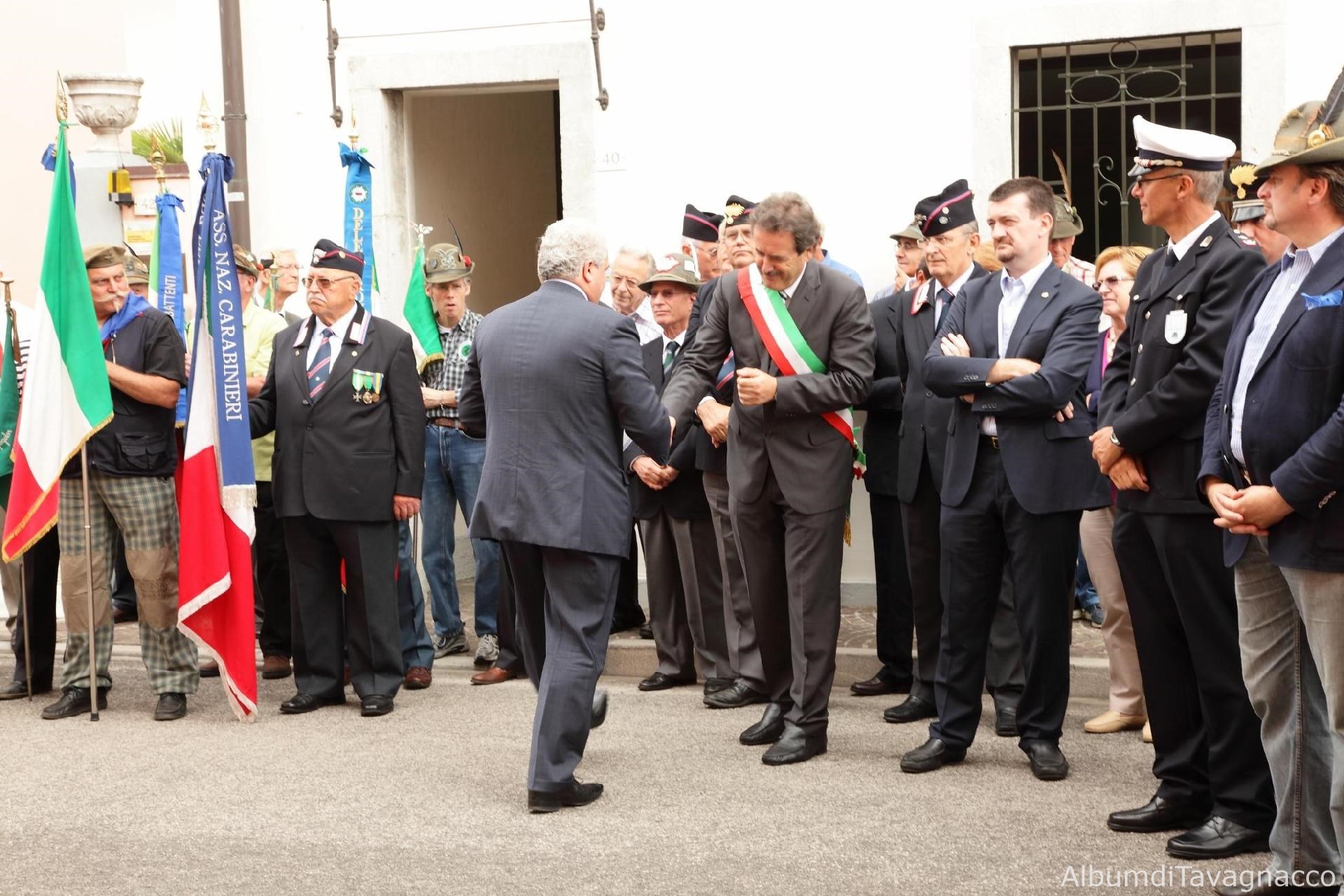 Il Sindaco Pezzetta stringe la mano al Senatore Pertoldi in occasione delle celebrazioni del 2 giugno 2011.