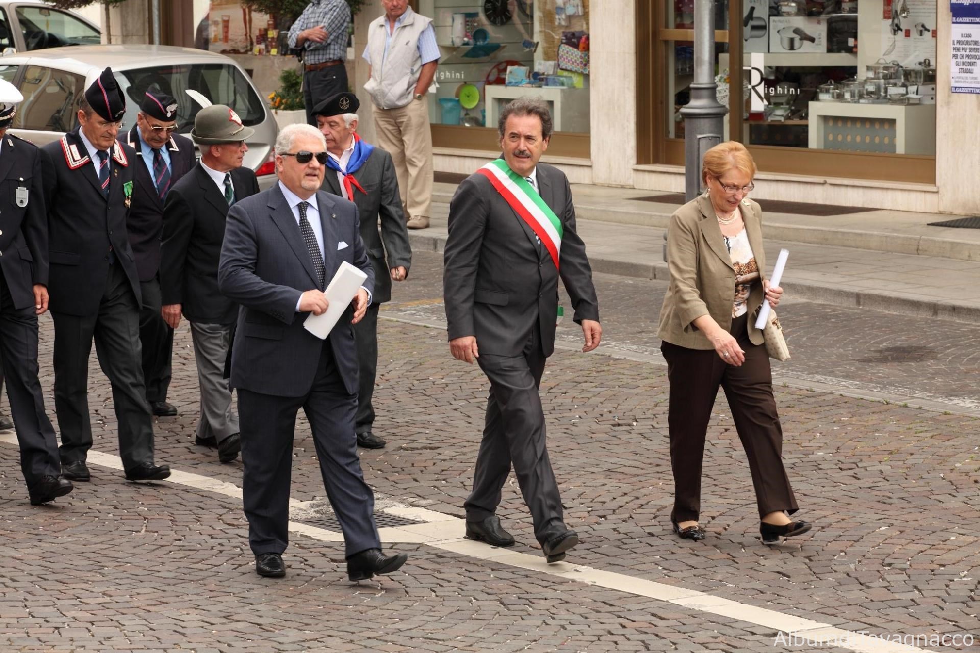Il Senatore Pertoldi, il Sindaco Pezzetta e il Presidente delle Vittime Civili di guerra Geretto in corteo al termine delle celebrazioni del 2 giugno 2011.