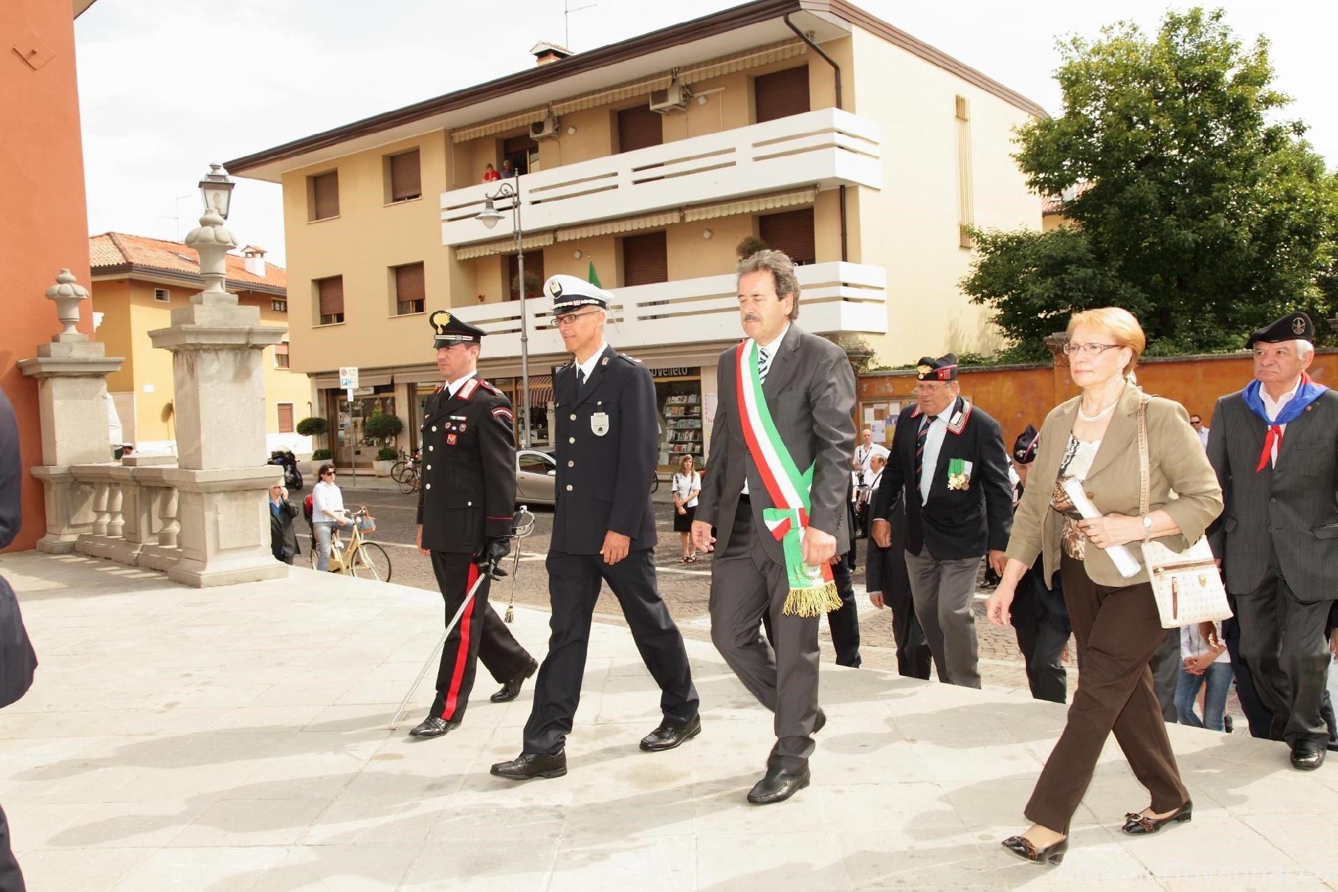 Il Comandante dei Carabinieri di Feletto Umberto Alessandro Campagnolo, il Sindaco Pezzetta e il Presidente delle Vittime Civili di guerra Geretto arrivano alla Chiesa Parrocchiale di Feletto in occasione delle celebrazioni del 2 giugno 2011.