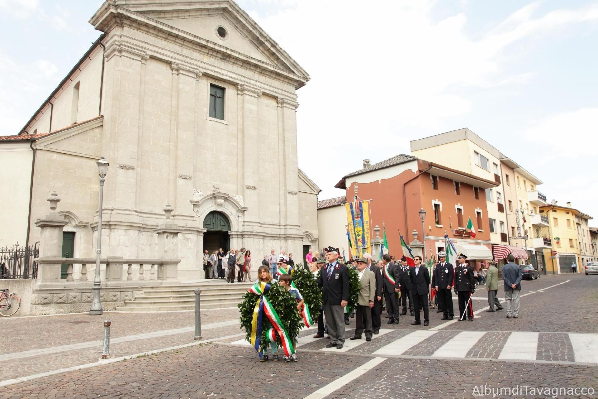 Al termine della Messa ci si appresta a portare le corone d'alloro al Monumento ai Caduti in Piazza Libertà in occasione delle celebrazioni del 2 giugno 2011.
