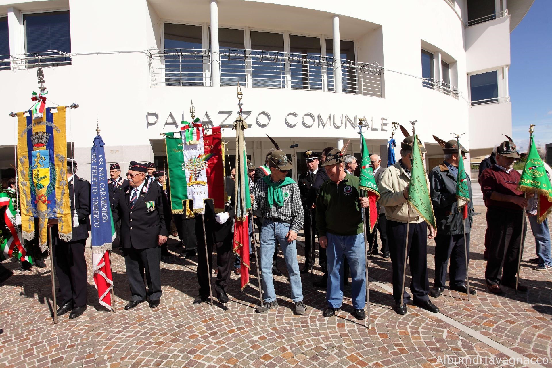 Rappresentanze degli Alpini e dell'Associazione dei Carabinieri davanti al Palazzo municipale in occasione delle celebrazioni del 2 giugno 2013.