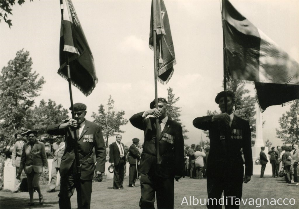 Cerimonia al Cimitero degli Inglesi. Tre reduci pluridecorati e portatori di bandiera, si allontanano dal monumento ai caduti, al termine della cerimonia.