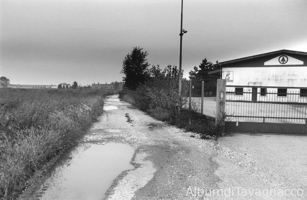 Via Varese. - Strada sterrata. - Capannone: ditta Despar. - Insegne. - Alberi
