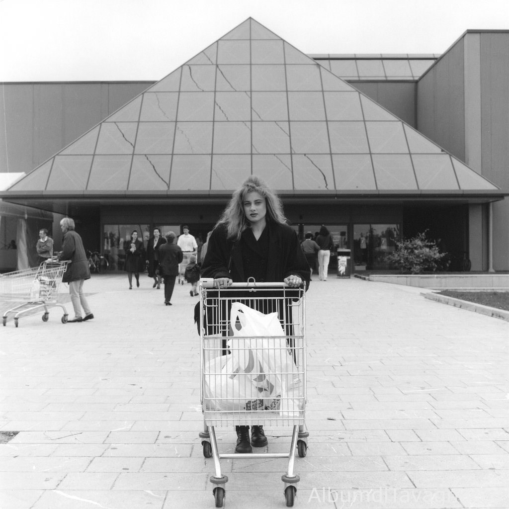 Giovane donna in posa davanti al Centro Commerciale Friuli.