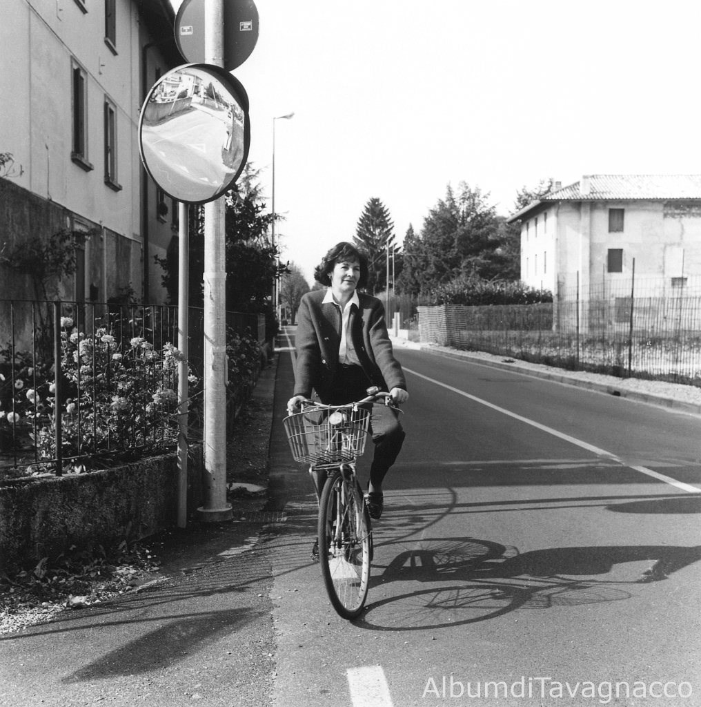 Donna in bicicletta, in Via San Bernardo (angolo Via Florio).