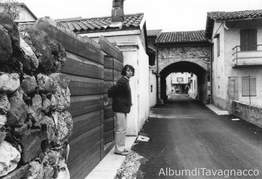 Donna sul portone, presso il sottoportico di Via Enrico Toti.