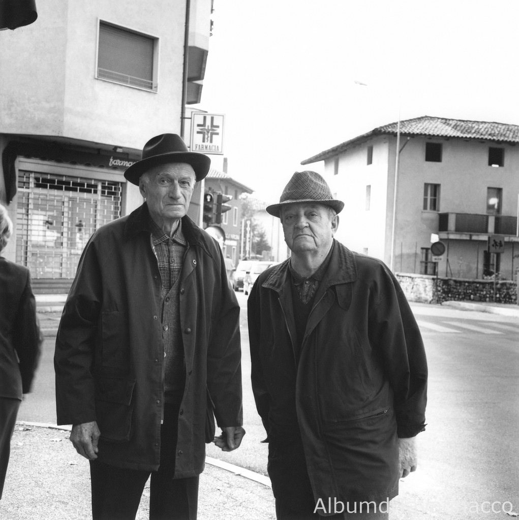 Due anziani in posa, all'incrocio tra Via Dante e Via Centrale.