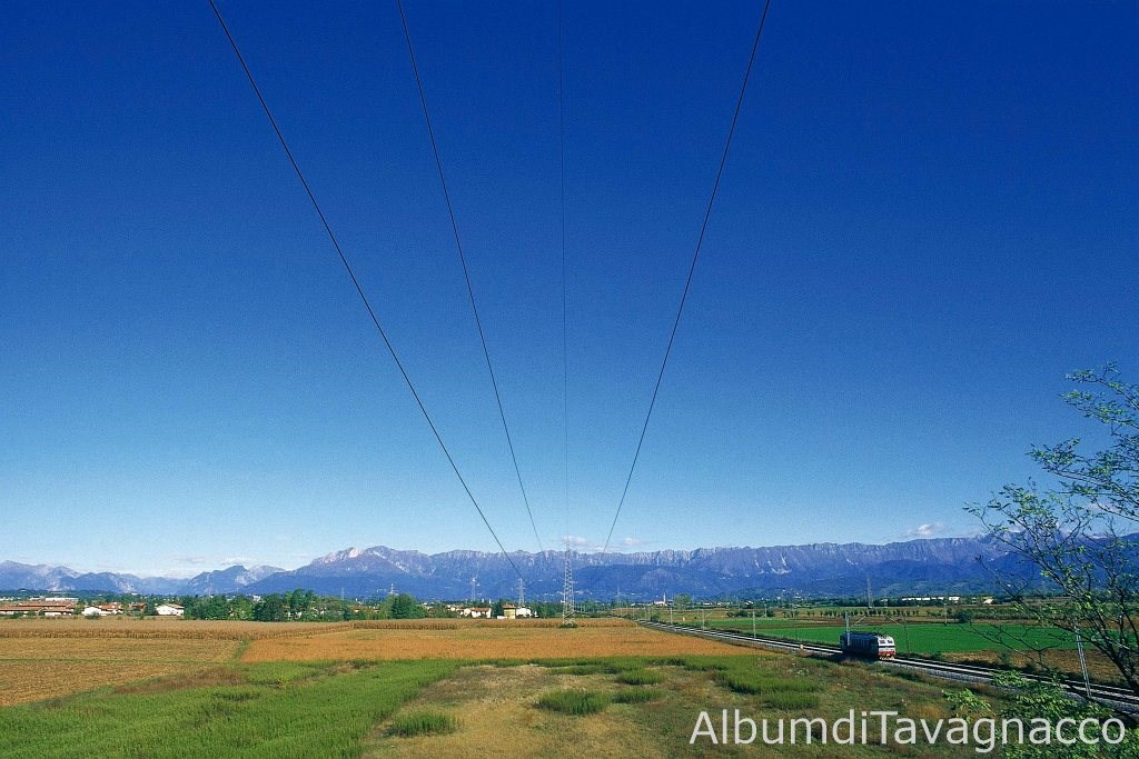 La ferrovia Udine-Tarvisio, tra i campi di Adegliacco e Santa Fosca.