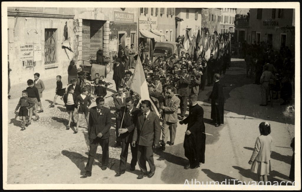 Corteo con numerose bandiere che percorre Via Udine, in occasione della festa del lavoro (I¦ maggio).