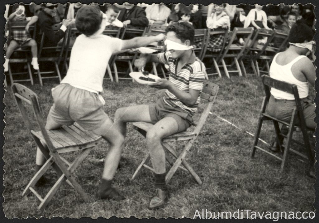 Una fase della "gara della marmellata", durante i giochi popolari della 213^ Sagra di San Vincenzo, nel parco di Villa Tinin.