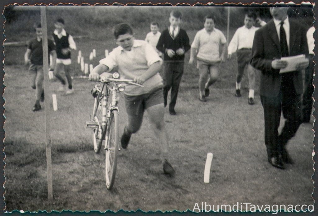 Una fase della gimcana ciclistica nel parco di Villa Tinin, durante la sagra di San Vincenzo (attività GIAC). In primo piano il passaggio di Bruno Roiatti.