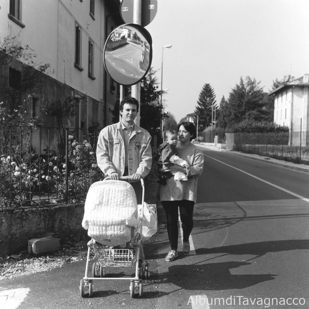 Uomo: giovane. - Donna: giovane. - Bambina. - Carrozzina. - Via San Bernardo. - Incrocio. - Specchio. - Recinzioni. - Alberi. - Piante