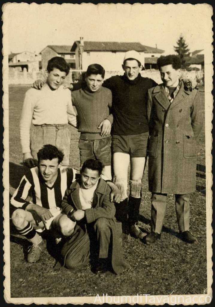 Gruppo di giovani calciatori, tra cui Claudio Coccolo (in piedi, I¦ a destra), in posa sul campo sportivo di Feletto Umberto.