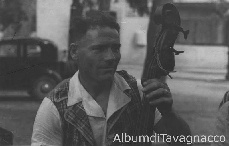 Ritratto di Giovanni Petri mentre suona uno strumento musicale.