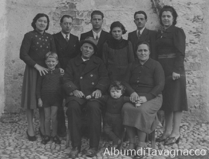Gruppo della famiglia Freschi, in posa nel cortile.