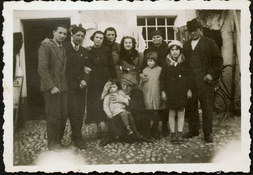 Gruppo di famiglia in posa nel cortile Foschiatti (Mantue).