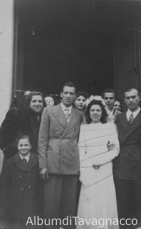 Gruppo di nozze in posa. Al centro gli sposi, Giuseppe Petrigh e Cecilia Nerboni.