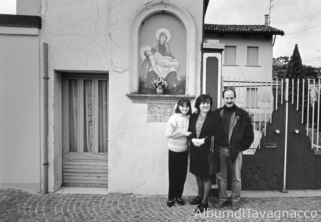 Gruppo famigliare in posa davanti al tabernacolo, in Via Cavour n° 43.