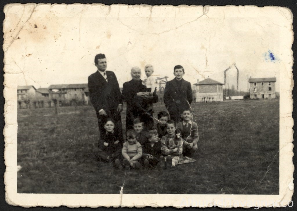 Gruppo della famiglia Mansutti, in posa su un campo, nei pressi di Via della Madonnina.