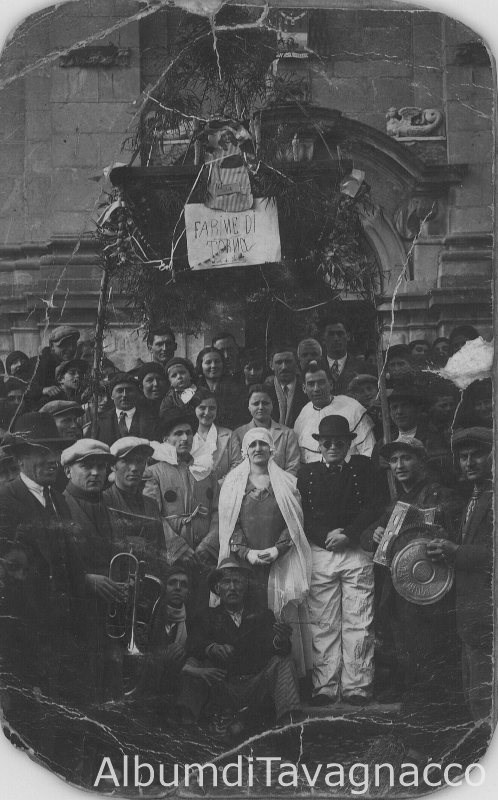 Bizzarro gruppo nuziale, in posa con gli sposi sul sagrato della chiesa di S.Antonio Abate.