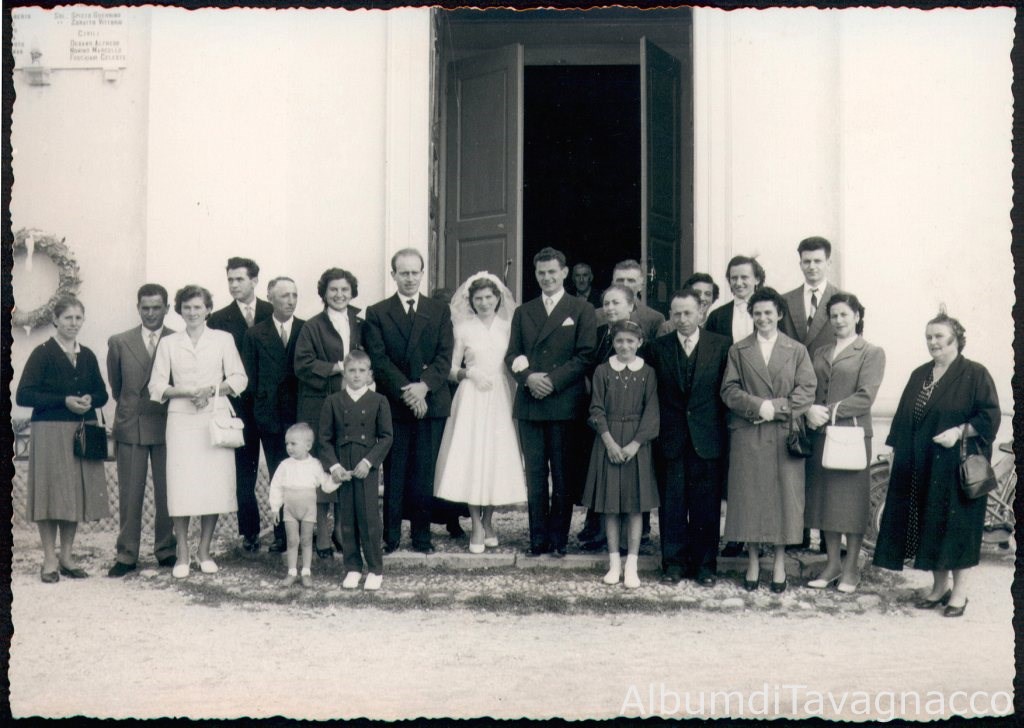 Gruppo nuziale in posa sul sagrato della chiesa di S. Leonardo.