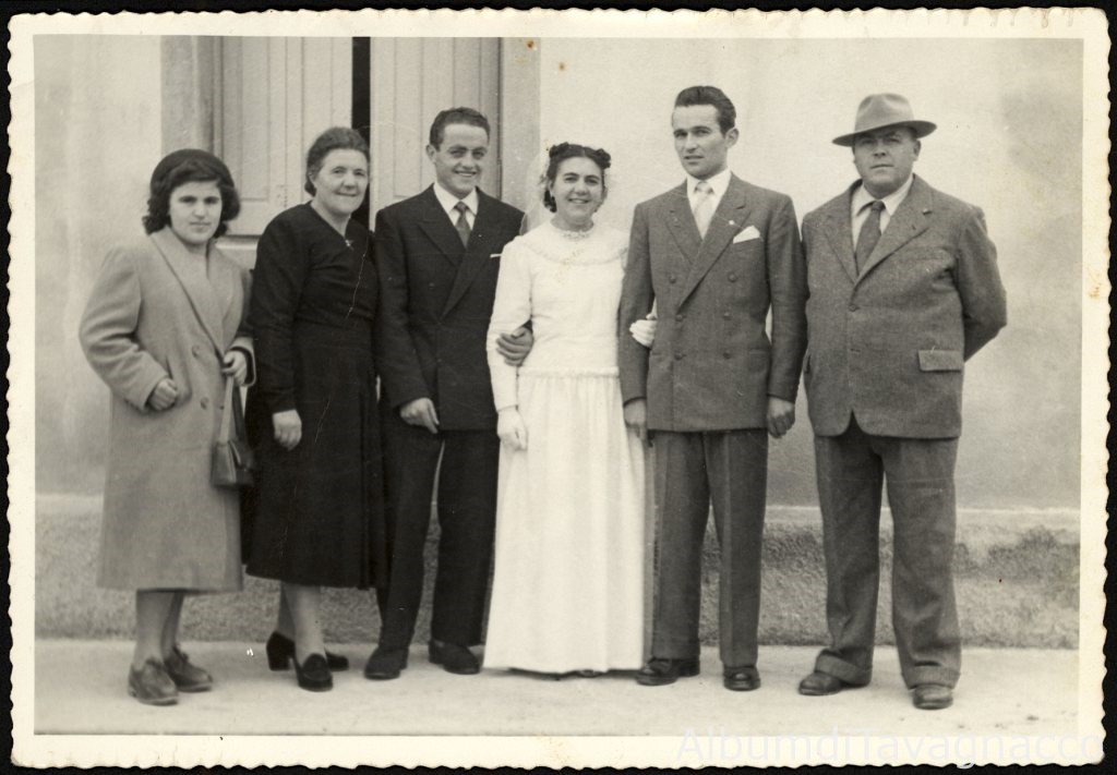 Gli sposi, Secondo Bernardis e Silvia Mesaglio, in posa insieme ad alcuni parenti, nel giorno del loro matrimonio.