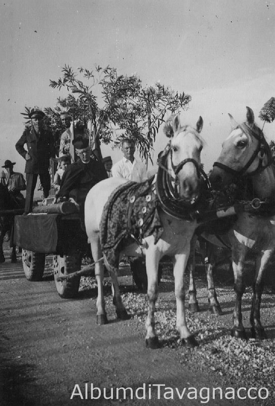 Il carro trainato da due cavalli bianchi, usato per il trasporto di un sacerdote e della statua della Madonna, in occasione della processione.
