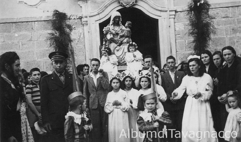 Il corteo della processione con la statua della Madonna, sul sagrato della chiesa di S.Clemente.