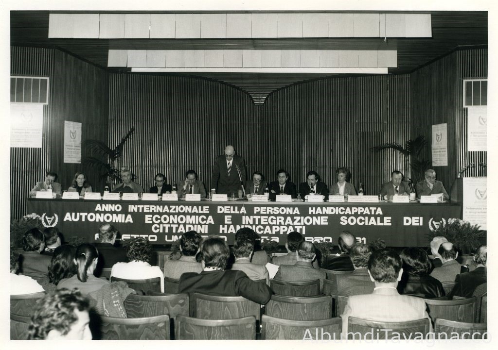 L’intervento del Presidente del Consiglio Regionale, Mario Colli, al tavolo delle autorità politiche e dei rappresentanti di varie associazioni e istituzioni sul palco dell’auditorium, in occasione della Conferenza sull’autonomia economica e integrazione sociale dei cittadini handicappati.