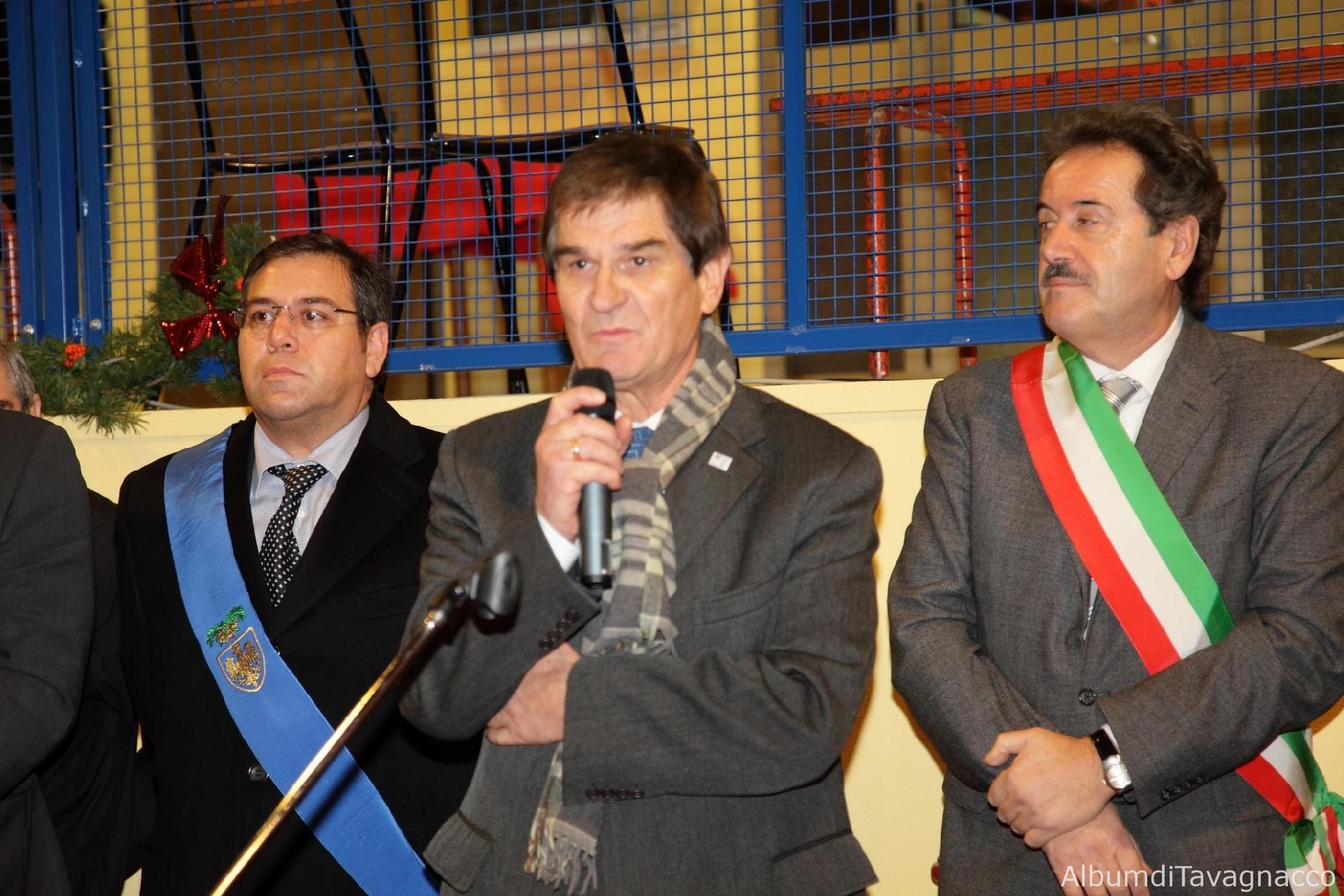 L'intervento del vicepresidente del CONI regionale Gemo a fianco dell'Assessore provinciale allo sport Virgili e del Sindaco Pezzetta in occasione della cerimonia di inaugurazione del Bocciodromo di Tavagnacco.