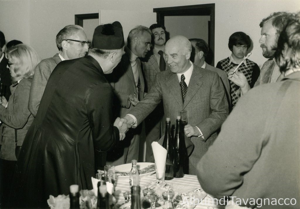 Il Dott. Mirko Colombatti, medico condotto del comune, stringe la mano a Don Nicolò Rossi, parroco di Feletto, in mezzo a varie personalità e autorità, durante il rinfresco organizzato in occasione dell’inaugurazione del nuovo Poliambulatorio comunale.