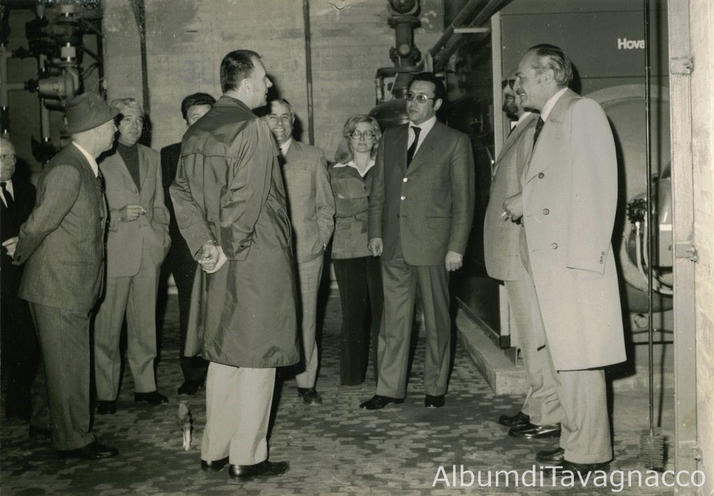 Inaugurazione del nuovo Poliambulatorio comunale: centrale termica. L’Architetto Renato Fiorini, progettista del nuovo Poliambulatorio comunale, illustra al Sindaco Giannino Angeli e all’Assessore regionale Nardini, e ad altre personalità e autorità, il funzionamento dell’impianto di riscaldamento.