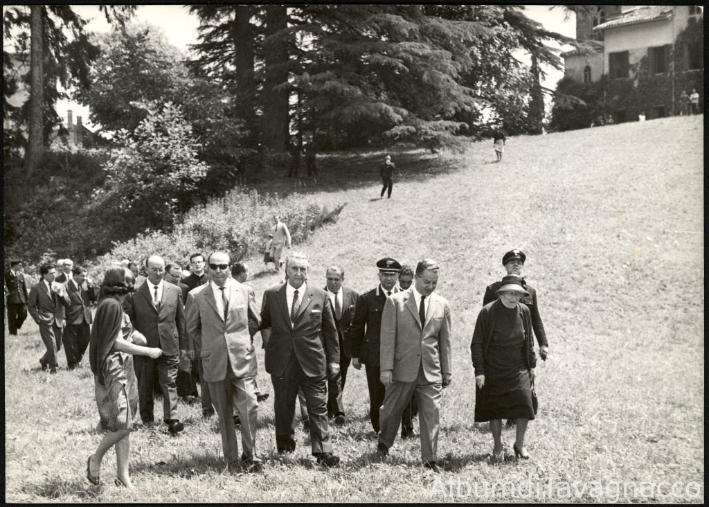 Gruppo di personalità nel parco della Villa Di Prampero, durante la cerimonia d'inaugurazione dell'annuale "Mostra degli asparagi".